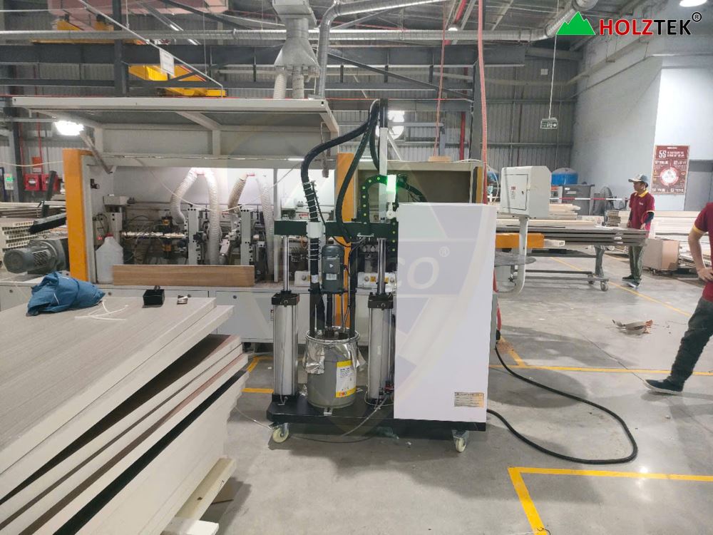 Hình ảnh Full bộ nồi keo PUR 20Kg cho máy dán cạnh được bàn giao cho khách hàng.